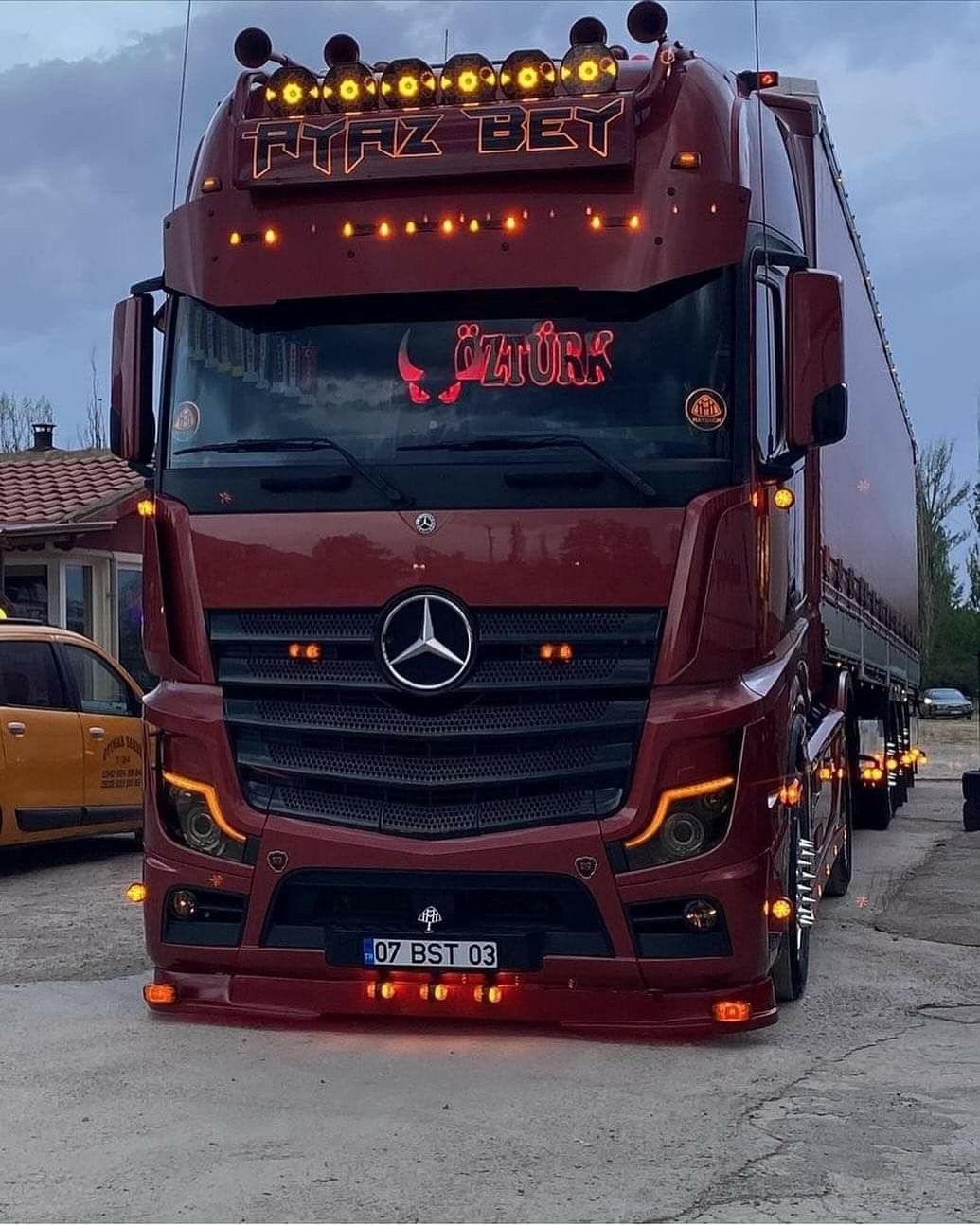 A Mercedes már önmagában a minőség szimbóluma, de ez a Mercedes kamion messze túllép a gyári megjelenésen. A fekete hűtőrács domináns jelenléte, a precízen elhelyezett LED pontok és a nappali menetfények különleges formája egy modern, agresszívebb külsőt adnak. Ez az a fajta megjelenés, amelyet a szép kamionok rajongói imádnak.